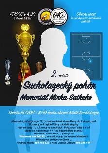 Obecní úřad městské části Suché Lazce ve spolupráci s TJ Suché Lazce Vás srdečně zve na tradiční posvícenecké fotbalové utkání Svobodní / Ženatí 2017. Turnaj proběhne na obecním hřišti v pátek 1.9.2017 od 17:00h a bude součástí programu sucholazeckého Posvícení 2017. Přihlášky podávejte v Hospůdce na hřišti, nebo telefonicky na 605 228 454. Hlavní cenou pro vítězný tým je bečka piva od starosty. Jen pro hráče nad 18 let. Občerstvení zajištěno!