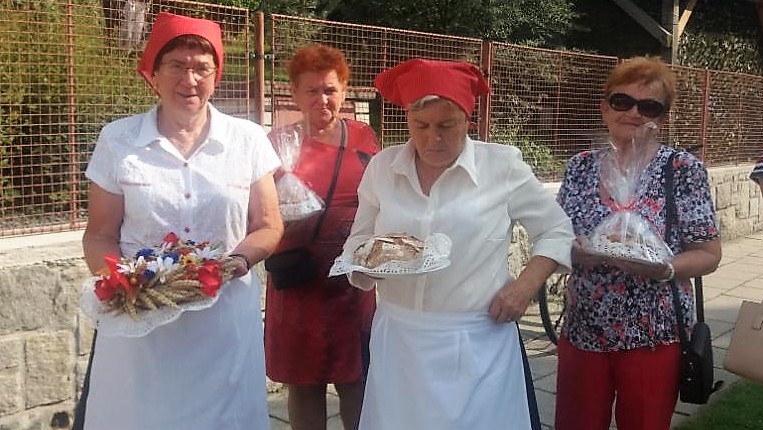Členky klubu důchodců J. Kaštovská, A. Loudová tradičně na sucholazeckém posvícení slavnostně předaly před kaplí panu starostovi naši obce Petru Orieščíkovi dožínkový věnec, chléb a posvícenské koláče. Předávání se také zúčastnil pan farář Adam Małek. Účastníci předávání se letos projeli kočárem přes vesnici a pozdravili návštěvníky posvícení.