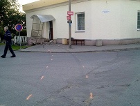 Dne 26.6.2012 ve večerních hodinách došlo k nehodě, při které řidič pod vlivem omamných látek naboural vchod do kulturního zařízení. (foto: Jana Kostřibová)