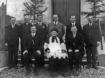 Představenstvo kaple, zleva: Adolf Gřešek, Antonín Věntus, František Gřešek, Alois Havlíček(stavitel), Eduard Halška, Jan Bala. Sedící: Josef Steyer, Mgr. Suchánek, Jan Sedláček