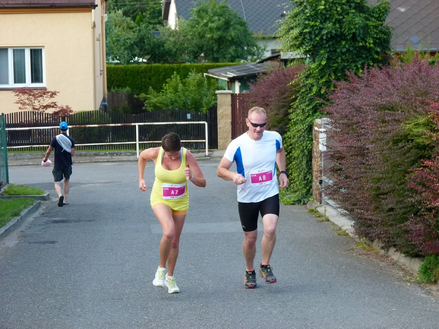 V 18 hodin se rozběhl hlavní závod dospělých. Těch se letos přihlásilo 16 běžců, ale na start se postavilo jen 13. Trať byla stejná jako loni, jen se zkrátila o 200 m z teplotních důvodu. Směr byl tento. Vyběhnout vpravo pod hřiště, zadem ke transformátoru a dolů po kostkované cestě k obchodu. Tady se závodníci vydali přes hlavní cestu, na které provoz hlídali strážníci městské policie, po ul. Na Štěpnici do Komárova k ZD. U něho se obrátili a odtud směřovali k lazeckému družstvu, pak na ul. Jičínská, zadem na Májovou a zpátky na hřiště. Letošní ročník vyhrál D. Diehel, jako závodník znalý tratě, oproti dvou přespolních, které zmátl orientační smysl. Z žen se nejlépe umístila R. Žůrková. Do cíle doběhli všichni, bez újmy na zdraví. Starosta pogratuloval výhercům a všem účastníkům za krasný závod. Děkujeme všem za pomoc, rodičům a známým za skvělou atmosféru a na příští ročník se už těší pořadatelé. Pozvánka zde. Výsledky zde.
