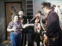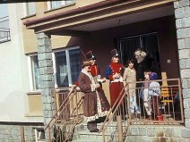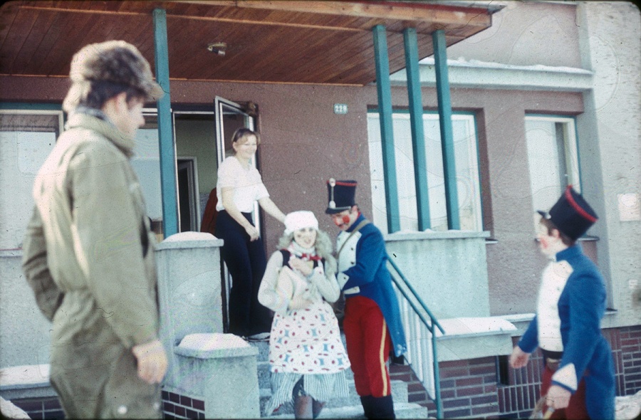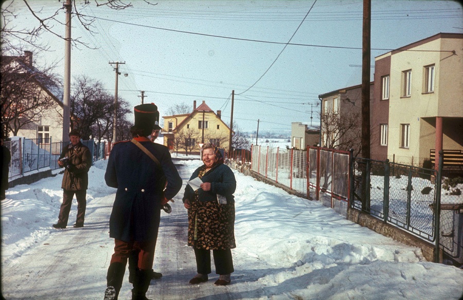 Článek v novinách: "SUCHÉ LAZCE. Tato integrovaná část okresního města si vedle vesnického rázu zachovala i podmanivou krásu lidových veselic, např. vedění medvěda. Pestrobarevný průvod masek, řízný tón kapely. Vajíčka, pečivo i lahvinka tvrdé domácí - to byly příspěvky, jejichž prodejem byly získány peníze, a ty věnovány potřebám místní organizace NF. Ta je použije třeba už za dva měsíce při májových oslavách. Záštitu nad hezkou masopustní akcí převzala Osvětová beseda."