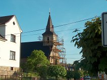 Fotografie jsou z 16.5.2005, kdy proběhla stavba lešení kolem kaple, aby následně 3.6.2005 proběhla revitalizace fasády. (foto:David Závěšický)
