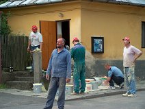 Poslední fází renovace kaple Andělů strážných v Suchých Lazcích byla renovace fasády, která proběhla zrhuba v období od 14.5. do 10.6.2005. Na renovaci fasády se opět podíleli místní občané díky jejichž nadšení a zápalu se mohla tato rekontrukce vůbec zrealizovat. Dnes se již obec může pyšnit zcela zrekonstruovanou krásnou kaplí. (foto: Barbora Sosnová )
