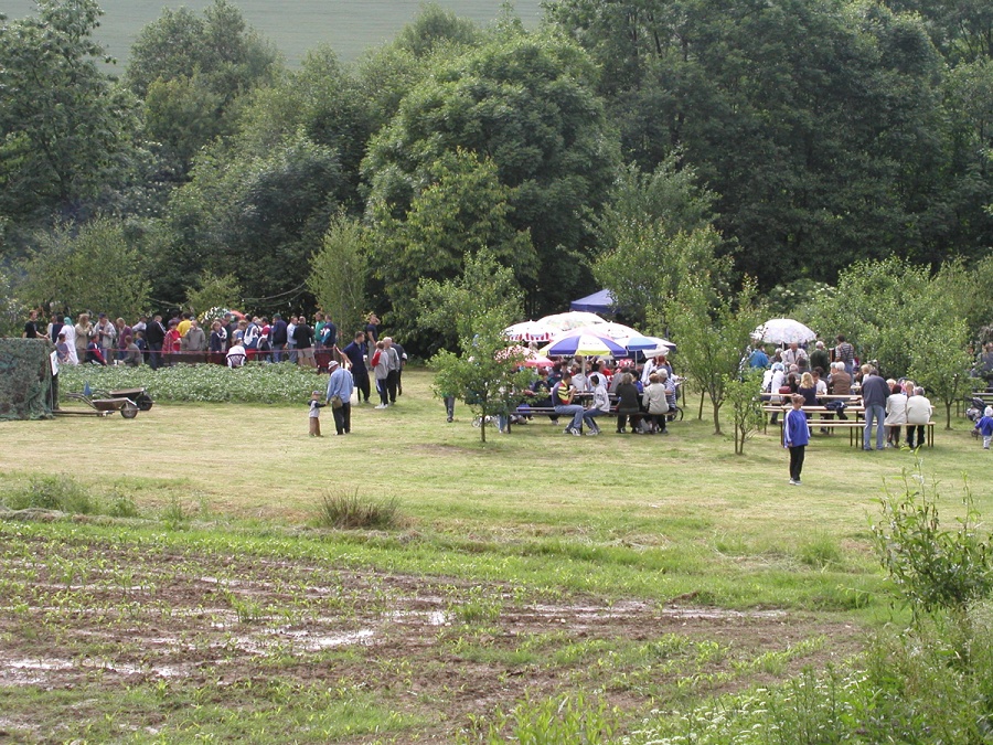 Přerovecké slavnosti, jak se tato akce jmenuje, proběhly 1. června 2002 na pozemku pana Adamčíka. Byl zde bohatý kulturní program pro děti a mládež, doprovázený komickými scénkami, bryčkou s koňmi a příjemnou hudbou. Hlavním programem bylo však kácení máje. Pak následovala volná zábava osvětlená plameny táborákového ohně. Večer zakončil všemi očekávaný ohňostroj. (foto: ing. Václav Skuplík)